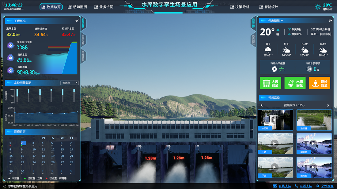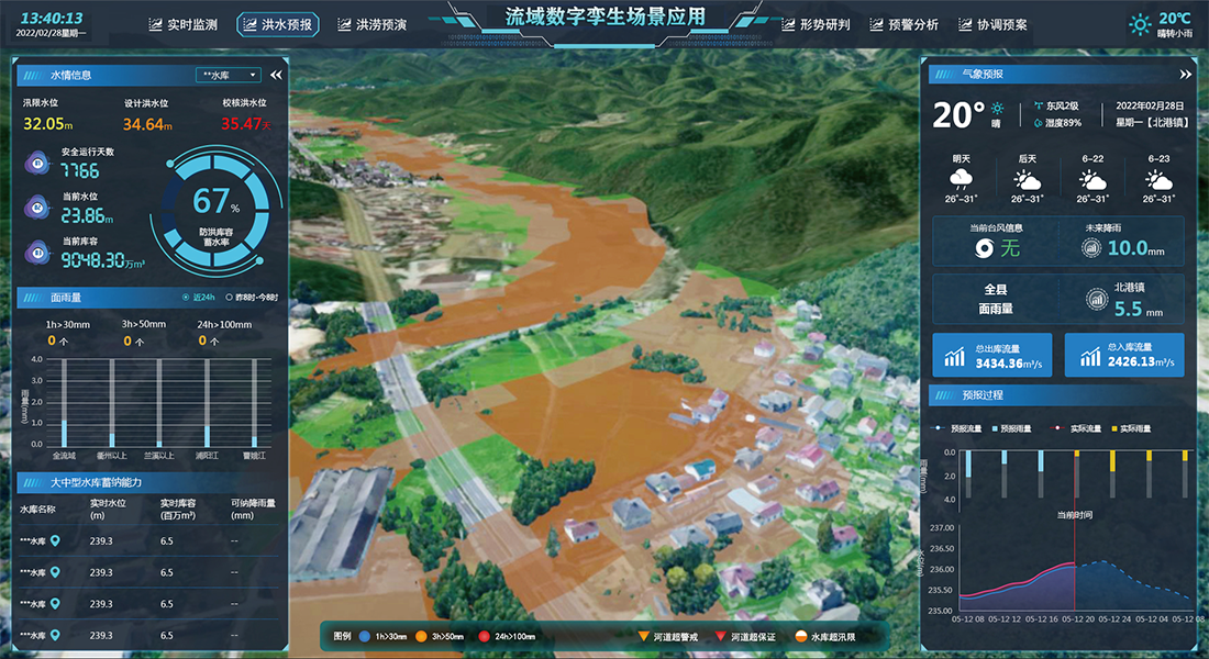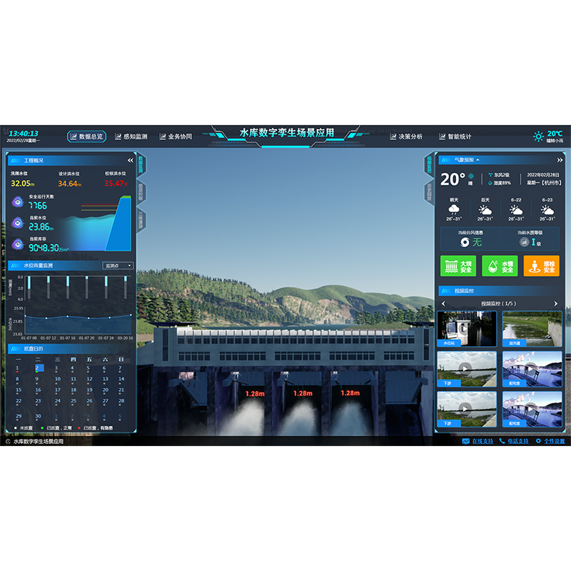 水利數(shù)字孿生場景應用依托感知集成實時狀態(tài)、數(shù)據(jù)治理、GIS及BIM圖形引擎、水利專業(yè)及智能識別模型等建立強大的數(shù)字孿生底板,對物理水利工程全要素以及管理過程進行數(shù)字化映射,實現(xiàn)可視化場景呈現(xiàn),賦能水庫、水閘、泵站、灌區(qū)、海塘、流域等水利場景管理,構建具有預報、預警、預演、預案功能的智慧水利體系。